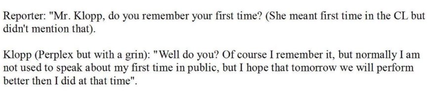 Tak nam treba a aj Kloppovemu že všetci hraju velmi dobre a nepotrebujeme žiadne posily nakolko on si nevie predsaviť čo by sme snimi vlastne robi a až ho to uráža
