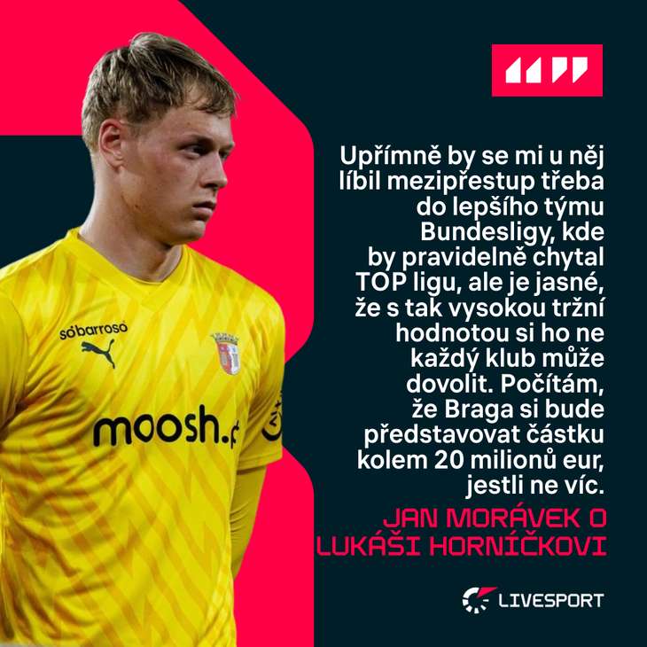 "Lukáš Horníček proti Moreirense moc práce neměl. Předvedl dva výběhy při centrech, které dobře vyhodnotil a došel si pro ně. Před koncem první půle ukázal dobrý reflex při střele doprostřed a vyrazil ji na roh, pak na něj šla slabá střela, kterou chytil bez problémů. Jinak střely létaly vedle a Braga si relativně v klidu pohlídala důležité vítězství 1:0. V tabulce je to jasně rozhozené. Bojují o čtvrtou příčku zajišťující kvalifikaci Konferenční ligy, mají tři body náskok na Famalicao a čtyři na Gil Vicente. Za silným trojlístkem Porto, Sporting, Benfica už je velká díra. Ve hře jsou i v Evropské lize, kde je ve čtvrtfinále čeká silný Betis. V Braze má Lukáš krásně rozjetou kariéru. Jeho tržní hodnotu aktuálně vyskočila na 15 milionů eur a v následujících měsících nebo letech ho čeká velký přestup. Spousta klubů v Evropě o něm ví a tipoval bych, že nějaký větší klub ze Španělska nebo z Premier League si pro něj brzy dojde.