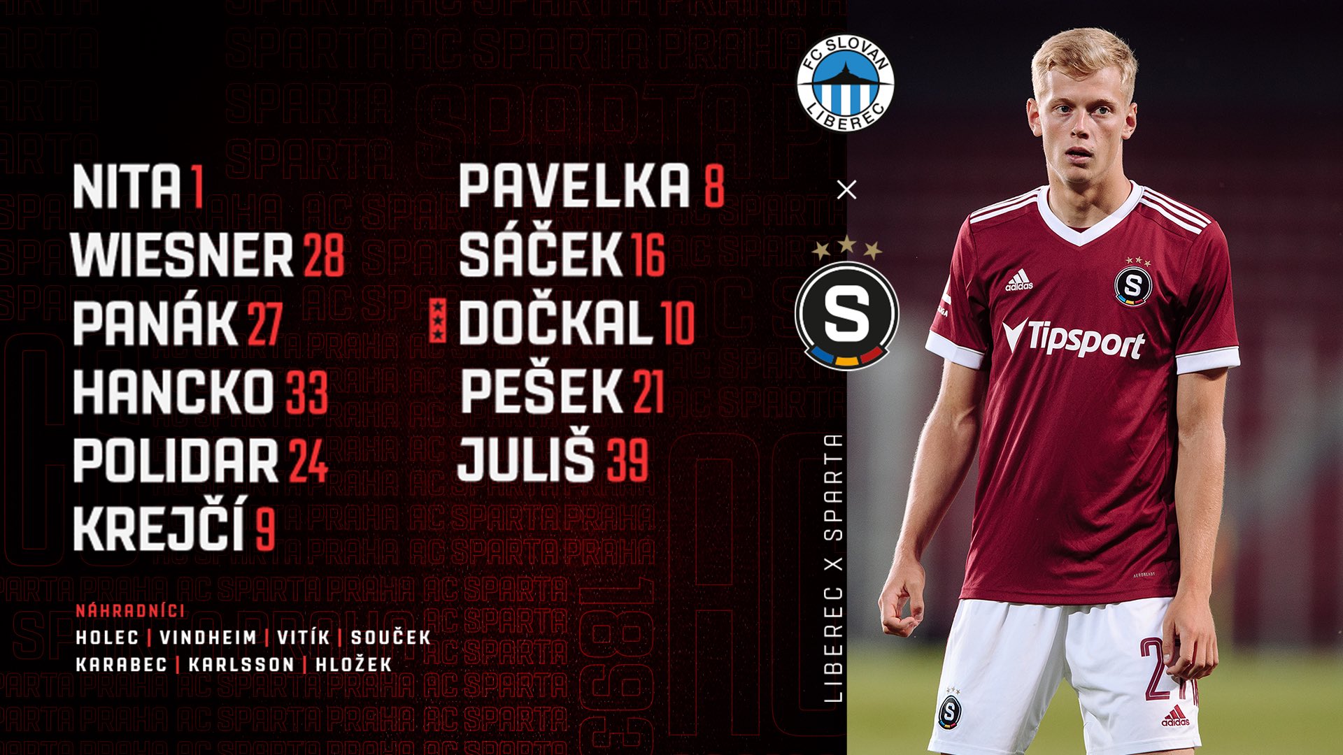Knobloch - Koscelník, Mikula, Purzitidis, Fukala - Havelka, Gebre Selassie - Nečas, Faško, Mészáros - Rabušic Sparta Praha - pravděpodobná sestava: