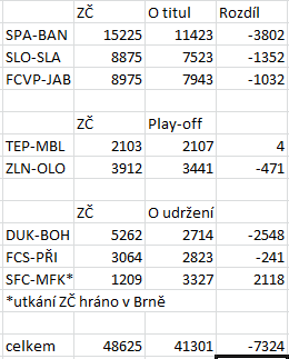 btw. návštěvnost celkem v porovnání se zápasy v základní části: