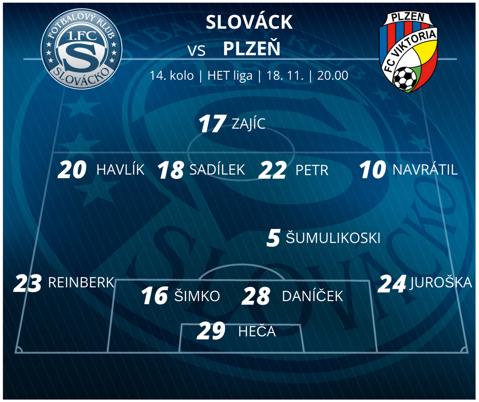 1. FC Slovácko - pravděpodobná sestava:Slovácko se momentálně nachází na 13.mistě bod nad sestupovým pásmem a Plzeň se jim podařilo porazit v lize naposledy v roce 2006. Domácím se ale podařilo překvapit minulý pátek, když právě Plzeň dokázali vyřadit z domácího poháru. Slovácku budou chybět vykartovaný Divíšek a zranění Břečka s Radou.