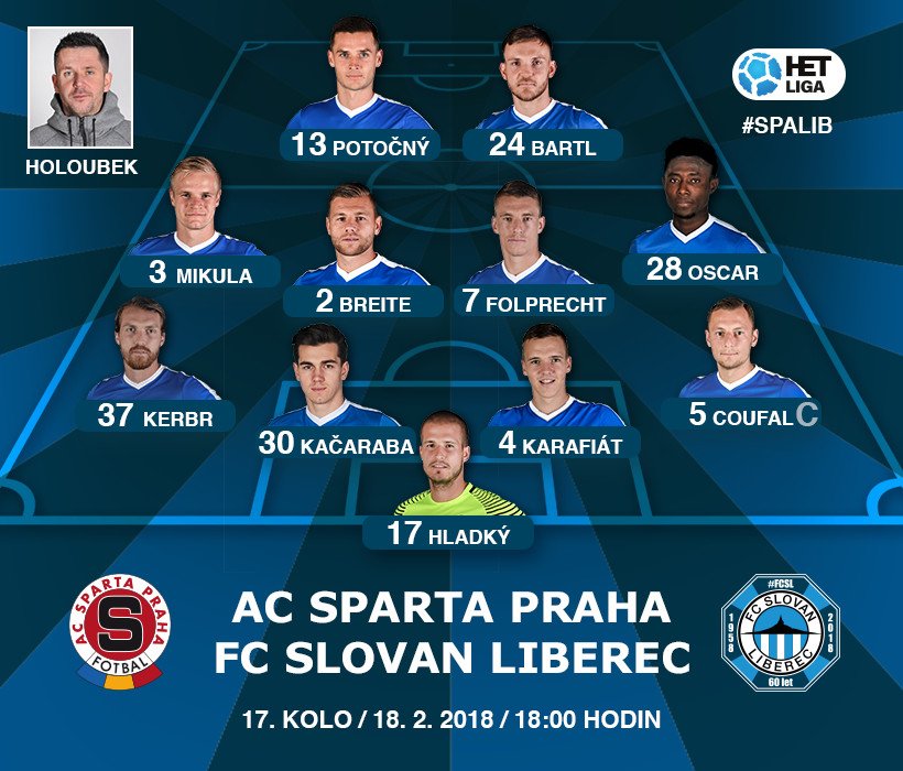 Sparta Praha - pravděpodobná sestava:Sparta prožila pod italským trenérem Stramaccionim špatný podzim. V Evropské lize vypadla brzy, stejně tak v domácím poháru a v lize je až na pátém místě. Fanoušci jsou rozladění a hráči jsou tak pod velkým tlakem. Do kádru přibyli Stanciu, Ristic, Kanga a brankář Nita. Spartu naopak opustili Janko, Konaté, Dúbravka, Karavajev, Mareček, Mandjeck a kariéru ukončila legenda Tomáš Rosický. Proti Liberci nenastoupí Šural s Michalem Kadlecem. Nejistý je start i Vatajela.
