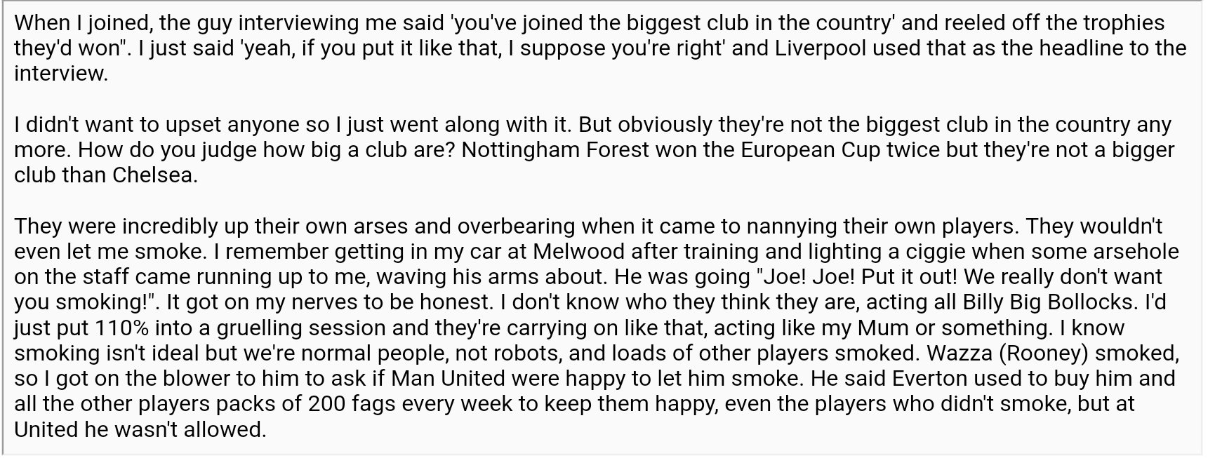 Symbol staré éry, škoda těch zranění. Nikdy nezapomenu na partičku na IT v sezóně 09/10. Taky si vzpomínám, jako něm Gerrard řekl, zejména tom technicky lépe jak Messi nebo tak něco :-D