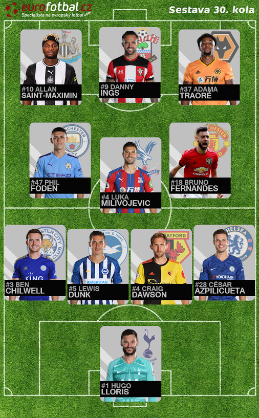 Levé křídlo: Allan Saint-Maximin (Newcastle): Zajímavé potvrzení, že přes karanténu se toho zas tolik změnit nemusí. Saint-Maximin kraloval na place poslední zápas před koronavirem a učinil tak i v prvním duelu po něm. Proti Sheffieldu nejnebezpečnější hráč Newcastlu, neustále na špičkách a připraven vtrhnout do obrany soupeře. Rychlý, nesmírně silný 1 na 1 a konečně taky kvalitní v zakončení. Vítězný gól nese jeho jmého.