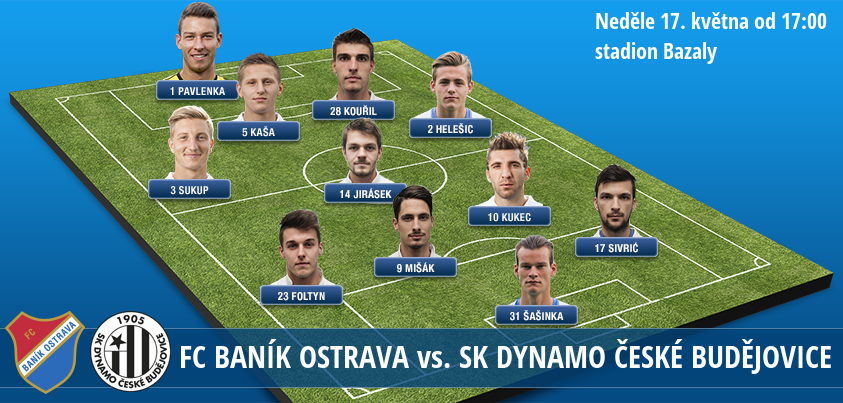 Baník Ostrava - pravděpodobná sestava:Dynamo ještě zůstalo ve hře o záchranu, i když šance na ni je minimální. Pomohlo mu k tomu utkání minulého kola proti Dukle Praha, které Budějovice zvládly na jedničku. Po patnácti minutách se prosadil Jiří Funda a rozjásal sektor domácích fanoušků, protože jeho zásah nakonec stačil na cenné tři body. Pokud ale Dynamo chce hrát o záchranu, musí bodovat také na populárních Bazalech. A to pro Dynamo vůbec není nepřekonatelný problém, protože Budějovice bodovaly ve čtyřech z posledních 5 ligových zápasů v Ostravě!
