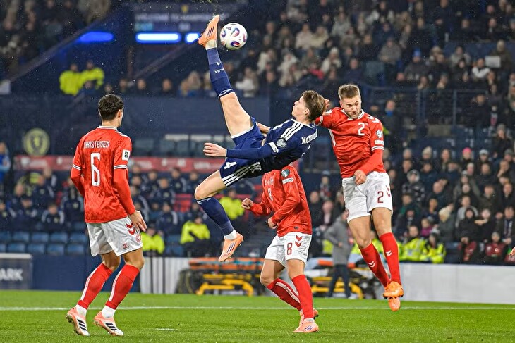 ⚽️ Skotsko v přímém souboji o postup na MS vede nad Dánskem po poločase 1:0, zatím jedinou branku utkání dal už ve třetí minutě takto nůžkami Scott McTominay. ✂️????pic.twitter.com/COHBxzfc6w