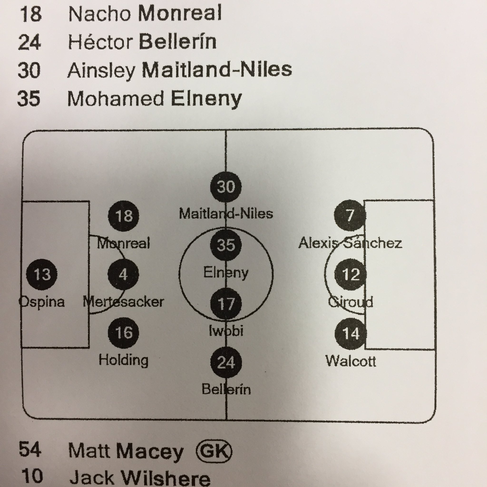 Ospina - Holding, BFG, Mustafi - Bellerin, Elneny, Wilshere, Monreal - Walcott, Giroud, Iwobi