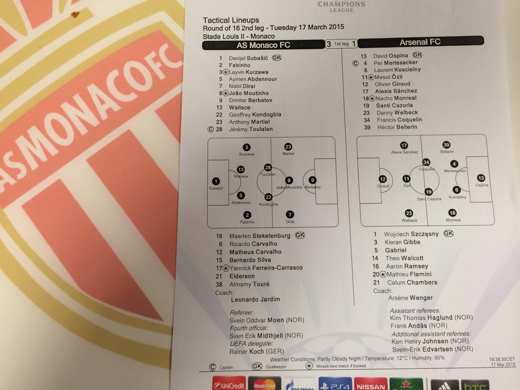 Pro Monako to byl vůbec první inkasovaný gól v Lize mistrů na vlastní půdě a nevypadalo to, že bude poslední. Jestliže Arsenal už předtím soupeře přehrával, poté to byl malou chvíli opravdový tlak. Krátce po první brance mohl zvýšit vedení Welbeck, jenže Abdennour tentokrát vleže ztečoval míč těsně vedle své svatyně.