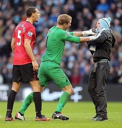 a fanoušci City se opět předvedli...fakt géniové...miluju tyhle mamr.y, který házej do hřiště předměty (Ferdinandův krvavej šrám)...podobně jako při derby pražskejch S Sparťani házeli zapalovače nebo co po Kiselovi